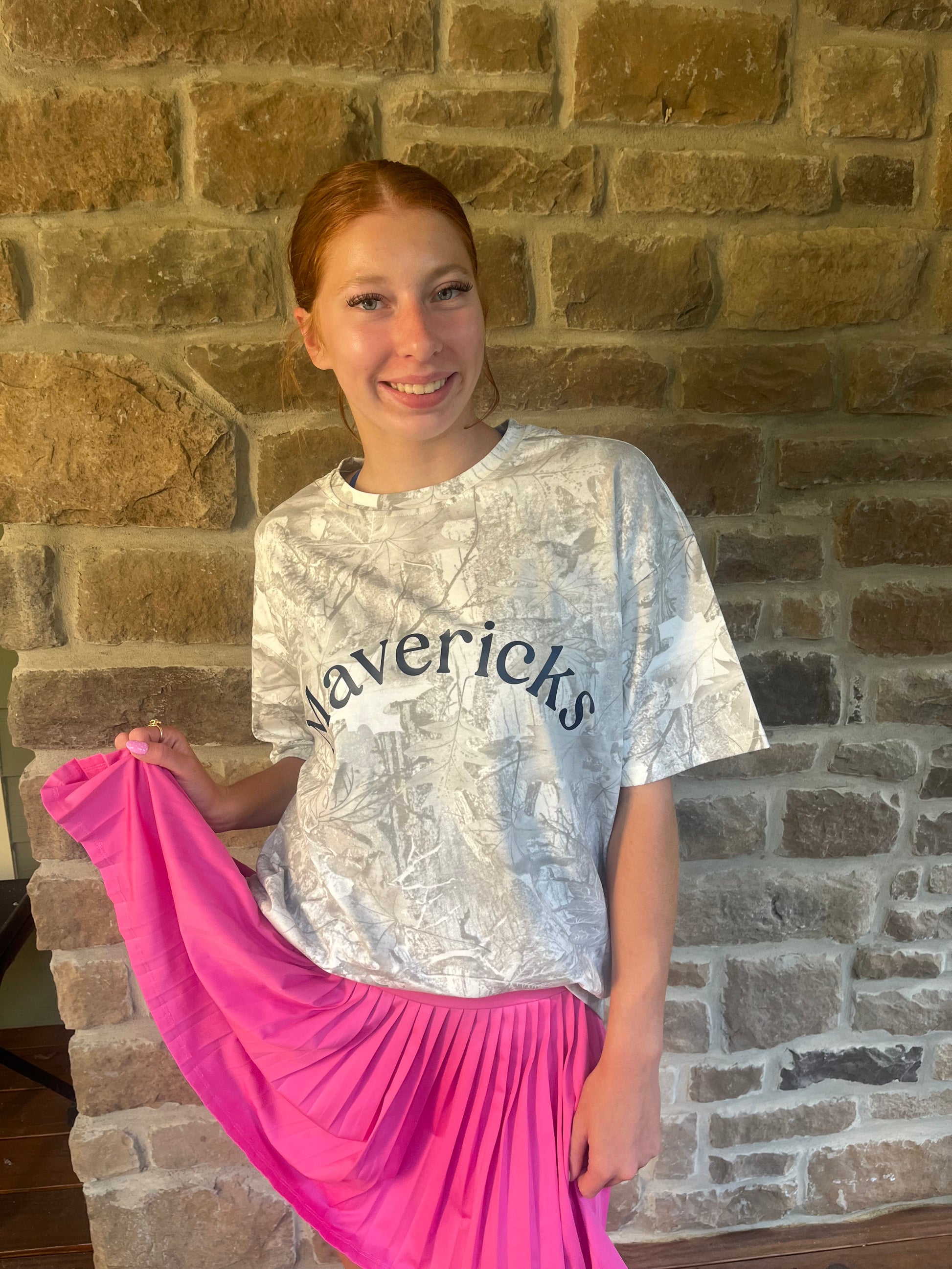 Camo shirt with navy mavericks design